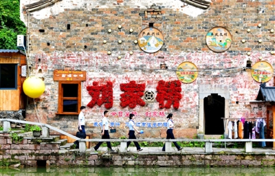 2023年以来,咸宁农商行投入近20万元专项资金,像绣娘般细琢刘家桥的每处肌理:帮20家商户将褪色木牌换成仿古铜匾,“刘家桥”的牌匾下新增了LED灯带,入夜后红彤彤的“刘家桥”能映亮整条巷子;邀请美院学生在斑驳砖墙上绘制《产业兴旺》《乡风文明》《绿水青山》等作品,画中对坐下棋的村民脚下,藏着咸宁农商行LOGO;给廊桥的雕花梁柱重新上漆,在桥洞下安装防水射灯,入夜后桥身倒影在河面铺开,成了抖音点赞超10万次的“网红打卡点”。