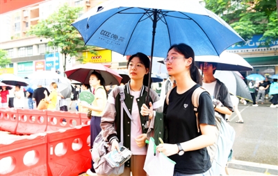 6月20日,咸宁实验外国语学校考点,中考考生笑赴青春考场。