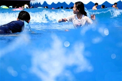 近日,重庆市气象台再次发布高温橙色预警信号。炎炎夏日,不少市民来到涪陵美心红酒小镇水上乐园戏水消暑,享受夏日里的清凉。 |