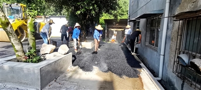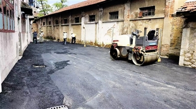 在文化站小区,本来就很狭窄的场地,还被各种晾衣架、健身器材所占据着,别说是大型的挖机、压路机,就是运输沥青的小号农用车,也无法驶入。