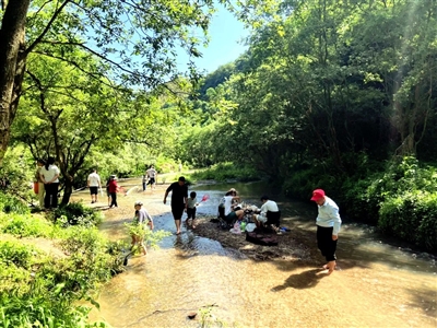 “这个夏天我已经是第二次带团队来这边了,无论是大人还是孩子,都能在这里找到回归自然的乐趣。”王胜康笑着说。溪水中偶遇的小鱼、小虾、小螃蟹更是成为了游客亲密的玩伴。而沿途的美景则像是一堂生动的自然课,让人在游玩中也能学习到不少知识。