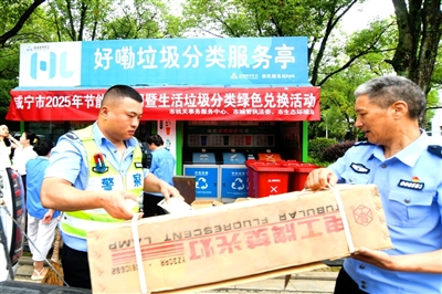 生活垃圾分类绿色兑换活动也吸引了不少目光。市直单位纷纷将收集已久的废硒鼓(墨盒)、废荧光灯管等有害垃圾送至好嘞垃圾分类亭进行规范处置,市民们也将家中的废电池、杀虫剂、过期药品等有害垃圾运送来集中处置,以换取绿色环保奖品。这些奖品包括环保布袋、可降解垃圾袋、再生打印纸等,既实用又环保。