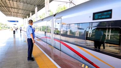 本报讯记者焦姣、毛亚轩、通讯员祝振权报道:7月1日16时29分,咸宁北站站台被阳光镀上一层金辉,随着一声清脆的发车铃声,G825次复兴号在乘客的期待中缓缓启动。这趟开往香港西九龙站的列车,载着在咸宁上车的50名旅客,首次将咸宁与香港通过铁轨紧密相连。5小时4分钟后,乘客们便能在香港西九龙站便捷通关,正式踏入香港。