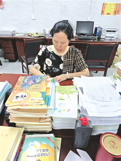 6月11日,晨光中的通羊四小墨香浮动,从教30多年,梅玉萍仍保持着清晨第一个到校的习惯,办公室砚台里隔夜的宿墨、写满批注的作业、粘着茶渍的数学教案,是她在教育一线默默耕耘最鲜活的注脚。