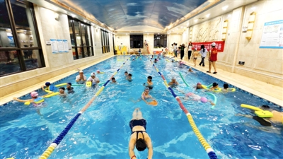 连日高温下,城区各游泳馆迎来接待高峰。7月6日,一游泳馆内,市民们携家带口在水中尽情戏水,泳池成为市民当下消暑的好去处。