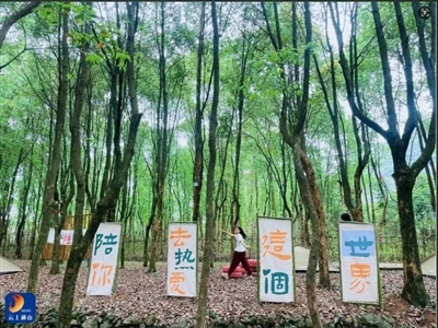 2023年5月,林上美宿对外开放,占地面积30亩,总投资1500万元,建有客房、游乐园、中餐厅、观景台、游步道、陶艺工作室、KTV、游泳池、生态种养殖园等。