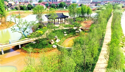 7月5日,咸安汀泗桥红色文化旅游区项目现场,汀泗河驳岸两侧绿树成荫,人工打造的景观与不远处的汀泗古街相得益彰。该项目重点打造集红色文化传承、爱国主义教育、生态休闲观光、民俗风情体验等功能于一体的综合性红色文化旅游胜地。目前,已完成东入口游园、汀泗河水利综合治理工程(核心区域清淤)、排水防涝综合工程等子项目,预计2026年全面建成开园。