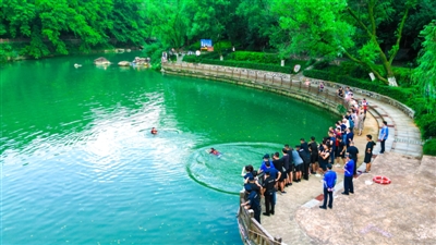 现场,蓝天救援队队长系统讲解溺水事故的预防要点、危险水域的识别方法,并演示了救生圈、抛绳包等救援器材的使用技巧。应急救援培训人员详细传授溺心肺复苏正确步骤,并针对可能出现的突发溺水场景,进行模拟实战演练。文/图记者 吴文谨 张仰强见习记者赵娴
