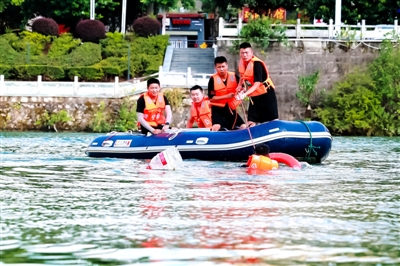 据了解,此次训练模拟汛期洪涝灾害场景,设置舟艇绕桥墩航行、精准抛投救生圈、模拟落水人员救援等科目,要求队员在规定路线内完成救生圈抛投、下水接近目标、拖拽救援等动作,并严格考核船只操控稳定性及救援时效性。