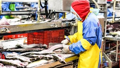 据悉,湖北浔味堂食品有限公司是嘉鱼县通过招商引资引进的一家农产品加工企业,总部位于浙江湖州,主营水产品加工及预制菜加工,是全国预制菜50强企业之一。“现在正值暑期,是销售旺季,日产可达50吨。嘉鱼水资源丰富,鱼的品质好,深受客户青睐,我们的产品畅销全国各地。”公司负责人介绍。