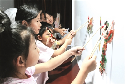 当日,咸安区图书馆全民阅读进基层活动在此开展,工作人员为48名暑期托管班的孩子带来“神话经典进村湾 ‘哪吒’皮影乐童年活动”。孩子们近距离观赏皮影戏,学习表演皮影戏,现场制作皮影戏人偶,在观赏、动手制作过程中感受皮影戏表演的乐趣。