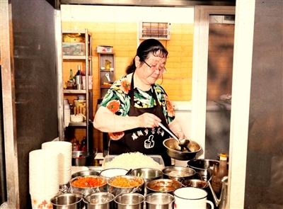 山穷水尽之时,谭慧萍没向命运低头。1993年一个夏日傍晚,她毅然挑起扁担——一头是食材调料,一头是小方桌与蓝色罩子,在二电机厂门口的空地上支起咸宁第一家凉面摊。