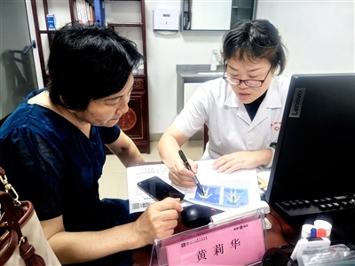 在三楼的治未病科,科室主任黄莉华正带领一批年轻医师为市民贴敷三伏贴,他们手法娴熟,一边操作一边叮嘱注意事项。65岁的李阿姨撩起裤腿露出膝盖,等待着医生辨证贴敷三伏贴:“年轻时在纺织厂车间受了寒,老寒腿疼得冬天走路都困难。前两年来这儿贴三伏贴,去年冬天走路散步都正常了。所以今年一入伏,我孙女就陪着我一起来了。”