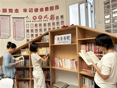 崭新的书册刚刚上架,就被眼尖的居民们发现。科普读物书架前,几个中学生正热烈讨论着《宇宙简史》里的黑洞理论。养生保健类书籍旁,张奶奶立刻找到了惦记很久的《中医食疗方》。“以前得专门跑区图书馆,路远天又热。现在好了,出门遛个弯,顺路就把书看了、借了,水塔里头还凉快!”她乐呵呵地说。