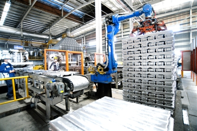 日前,咸宁高新区凤凰工业园,湖北华劲铝业有限公司生产车间,机器人正以0.5毫米的精度码放铝锭。