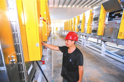 8月29日,嘉鱼品能电池有限公司新建生产车间内,生产设备有序进场,工作人员正在进行设备调试。