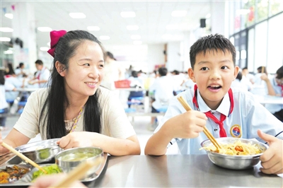 欧阳发介绍,现在,进入学校食堂的每棵菜、每块肉都有“数字身份证”,27辆冷链车全程温控追踪,食材从采购到上桌最多24小时,AI系统24小时智能巡检后厨。家长既可通过手机随时查看后厨实况,也能走进食堂陪餐。