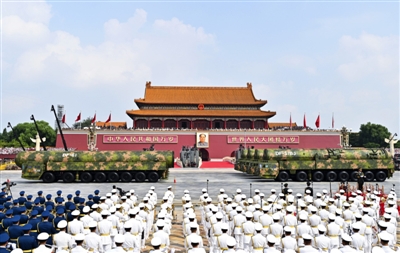长安街上,雄师列阵、铁流滚滚,受阅官兵齐声高呼“正义必胜!和平必胜!人民必胜!”;直升机悬挂“正义必胜”“和平必胜”“人民必胜”条幅飞过天安门广场;8万羽和平鸽振翅翱翔……铭记历史、缅怀先烈的时刻,也是珍爱和平、开创未来的时刻。