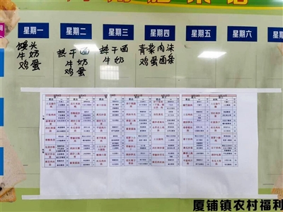 厨房里,工作人员正在准备午餐。监控摄像头正对操作台,食品留样盒整齐摆放。“我们通过配送公司科学定制菜谱,实行集中配送,确保每餐有肉食、牛奶、鸡蛋和水果供应。”谢光利介绍道。
