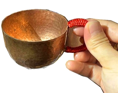 十多分钟后,一只紫铜杯在他的捶打下成型,细密的锤纹与独特的桔皮纹引来游客围聚观看,满是好奇与赞叹。