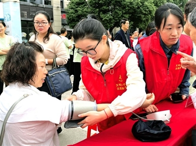 “阿姨,您的血压正常,但平时还是要少吃咸的。”医疗志愿服务队的医生细心地为一位老人测量血压。不远处的理发区,志愿者手法娴熟地为居民理发,一旁等待的老人们唠着家常,脸上洋溢着笑容。磨刀服务点传来“嚓嚓”的磨刀声,老师傅一边磨刀一边与居民交流刀具保养知识。