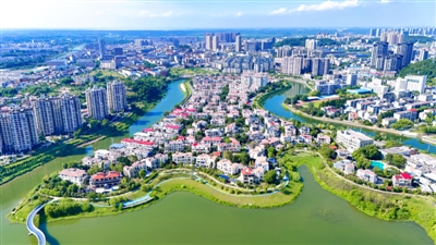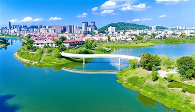 市民漫步其中,可见白色的景观桥倒映在河水中,宛如飘带;亲水平台与对岸的高楼遥遥相望,自然生态与城市景观完美融合。