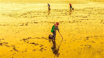 近日,江苏盐城东台沿海,渔民在退潮后采拾泥螺、文蛤等海产品。江苏盐城东台沿海,沙洲密布,海生物极其丰富。退潮后,泥螺、文蛤、青蛤、四角蛤、薄荚蛏等都能够在海滩拾得,成为了沿海小镇独特的风景线。