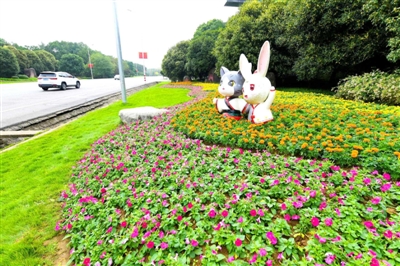 园林“添亮色”,城市披上“花衣裳”
