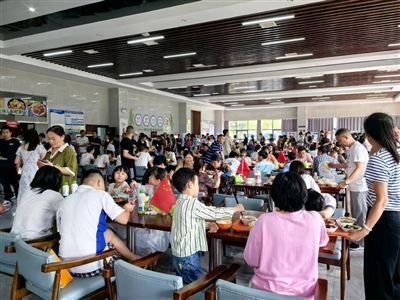 为保障服务品质,食堂9月20日便启动“备战”:临时增聘8名工作人员,团队总人数达22人;新采购500个食品级餐盘、1000套高温消毒餐具及5000个降解餐盒,既守牢食品安全关,又提升出餐效率。
