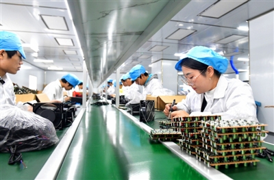 10月27日,通山经济开发区南林工业园,湖北启航芯科技有限公司车间内,工人们正在流水线上作业。