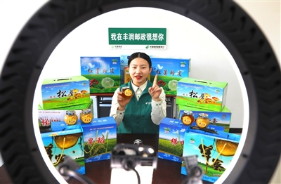 11月11日,在中国邮政集团有限公司河北省唐山市丰润区分公司,主播在网络平台上推广当地农特产品。