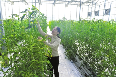 日前,嘉鱼县蔬菜科技示范园蔬菜科技馆内,工作人员正为试种的新品果树修剪枝丫。