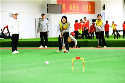 被称作“平民高尔夫”的门球,以其独特的趣味性与竞技性,成为老年人的健身首选。走进咸宁门球馆,平整如毯的草坪、笔直清晰的标线、整齐排列的场地映入眼帘。休息区座椅充足,饮水、急救设施齐全,指引牌一目了然,处处透着贴心。馆内木槌撞球声与喝彩声交织,活力扑面而来。