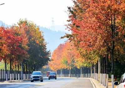 初冬时节,咸安区温泉街道孟养浩东路两侧,枫树在低温催化下悄然“换”上红装,层层叠叠的枫叶如火焰般缀满枝头,与湛蓝天色、来往车辆共同勾勒出一幅温暖明艳的“枫景”画卷。