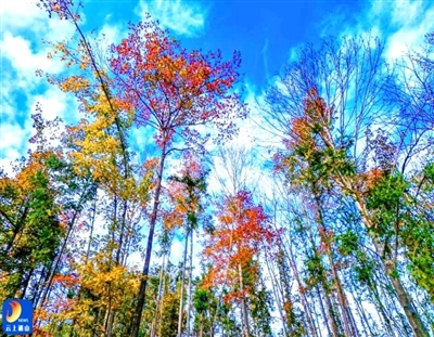 当晨霜初凝,通山长林山的秋日正上演着最动人的变装秀。枫香红叶将漫山遍野染成跃动的火焰,竹叶在青黄交接处保持着最后的矜持,山径蜿蜒处,古樟树吹来的幽香时隐时现,野菊在枯草从中绽放星星点点的金黄,湖水如镜般,将这一切斑斓尽数收藏。