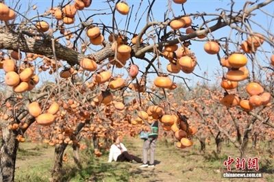 眼下,正值柿子成熟的季节,在河南郑州惠济区黄河岸畔,柿子树硕果累累,如同一盏盏火红的小灯笼挂满枝头。