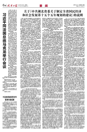 关于《中共湖北省委关于制定全省国民经济和社会发展第十五个五年规划的建议》的说明
