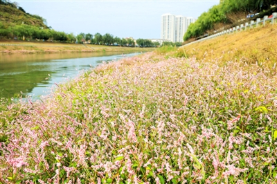 初冬时节,咸安区淦河之畔披上了斑斓冬衣,水蓼花成簇绽放,宛如大自然最灵动的笔触,在河岸勾勒出一幅彩色绸带般的景致,轻拂着清澈的水面。