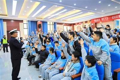 12月2日,市公安局咸安区分局交通管理大队联合市银桂学校,在该校开展以“文明交通,礼行天下”为主题的“122全国交通安全宣传日”活动,为全校师生送上生动的交通安全“必修课”。