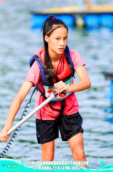 在前不久落幕的2025年全国桨板锦标赛上,赤壁市少儿业余体校陆水湖青少年水上运动中心的队员们表现抢眼。思文慧作为队员中的一员,一路“高歌猛进”,夺得女子U12组别总分冠军。