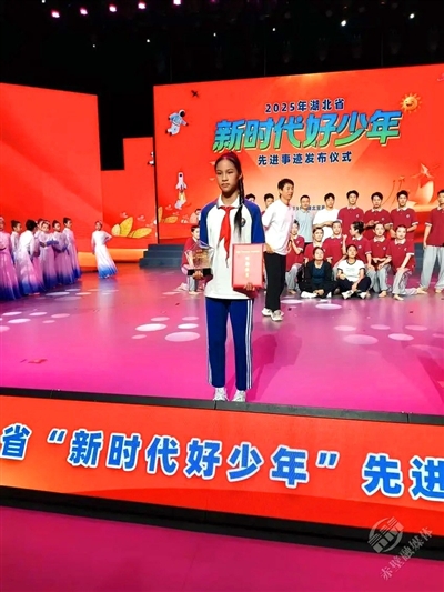 日前,2025年湖北省“新时代好少年”先进事迹发布仪式在宜昌市举行,赤壁市第三小学学生思文慧喜获湖北省“新时代好少年”殊荣。