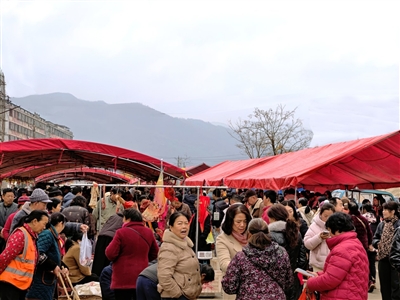 “来的人太多,都没地儿下脚啦!”牛肉摊主忙碌中“抱怨着”,但脸上笑开了花。“卖点山货再买点日杂,今天这一趟来得值!”提着篮子的阿婆收获满满、步履匆匆。