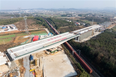 12月25日,由湖北交投集团投资建设、中铁十一局承建的咸宁桂花至汀泗高速公路与京广铁路交叉工程转体桥顺利完成转体。