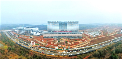 1月5日,华中科技大学同济医学院附属同济医院咸宁医院项目现场,项目主体外立面工程正在有序进行。