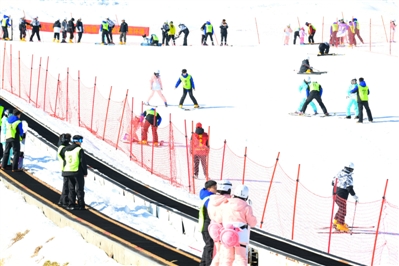 1月9日,通山县九宫山滑雪场,滑雪教练在指导游客滑雪。今冬,通山县升级九宫山滑雪季产品套餐并发布专项优惠政策,吸引四方游客前来感受冰雪魅力。记者 陈红菊 通讯员 金珂如 方盈颖 摄