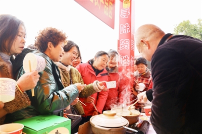 在年味集市区,各类特色美食展区前人头攒动。砂锅炖煮的贺胜鸡汤热气腾腾,勾人味蕾、暖人心脾。除了现煮免费品尝的鲜汤,集市还推出了便捷的礼盒装鸡汤,这些采用传统工艺煨制、经现代技术保鲜的罐装鸡汤,既保留了原汁原味,又方便携带和加热,成为“抢手货”。“这里有土鸡、有机鸡、黄精鸡等多个品种,多家本地餐馆企业参与,敞开供应让大家尽兴尝鲜。”贺胜桥镇商会秘书长方红兵介绍。