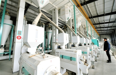1月12日,赤壁市肖威农业开发有限公司大米加工车间,全自动成套水稻碾米生产线开足马力。