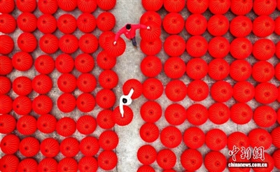 1月20日,随着春节临近,红灯笼销售走俏。在四川省成都市金堂县金龙镇鸿发灯笼厂的生产车间内,工人们正开足马力赶制灯笼。