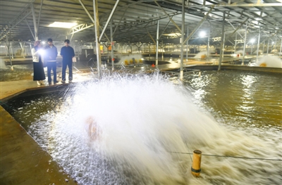 1月12日,赤壁市茶庵岭镇青石桥社区一组的丰安水产养殖有限公司养殖基地内,水车式增氧机24小时不停运转,为池中鳗鱼供给充足的氧气。该公司采用“种养一体化”特种水产循环水养殖模式,目前,年产鳗鱼达300吨,提供就业岗位20个。