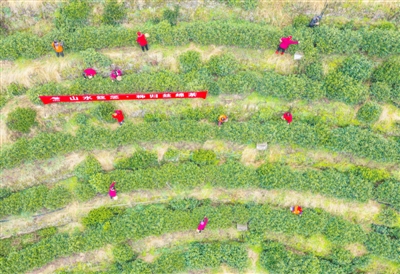 1月29日,三峡库区湖北省宜昌市秭归县“丝绵茶1号”早茶基地开园,当地茶农抢采茶叶嫩芽,供应春节市场。湖北秭归是“中国丝绵茶之乡”,近年来,当地茶农和华农大科研人员立足本地优势茶树品种,选育并推广“丝绵茶1号”特早生茶树新品种,助力乡村产业振兴。